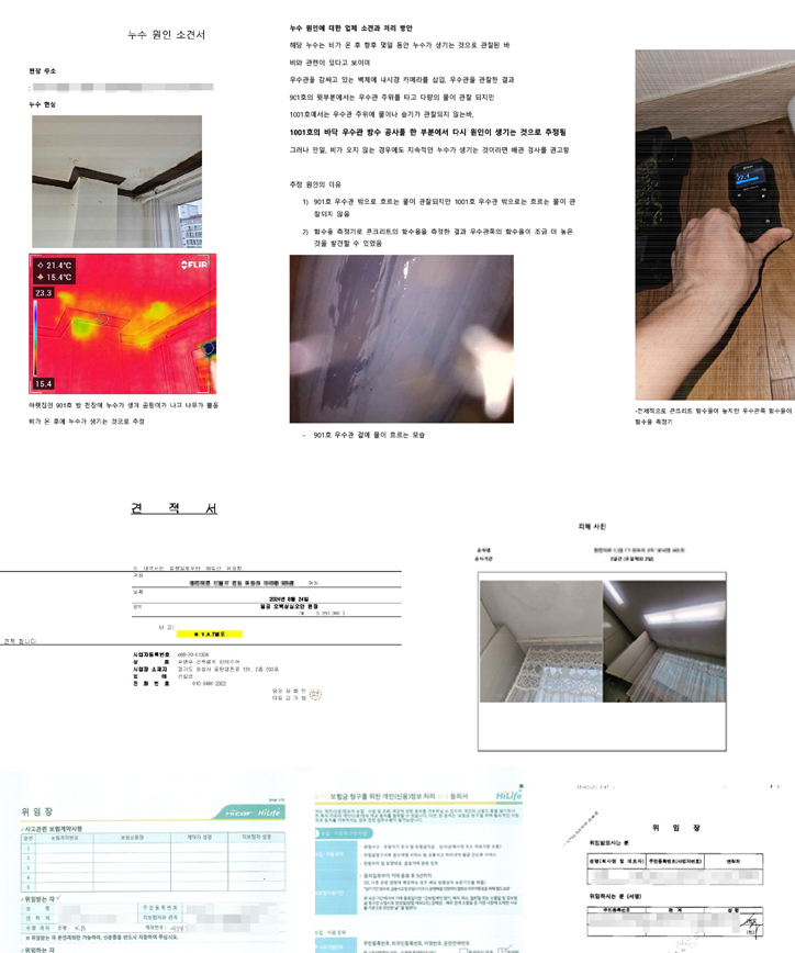 복구 공사가 완료 된 후 보험사에게 청구하시어 보험금을 수령할 수 있도록 필요 서류를 제공해 드립니다.